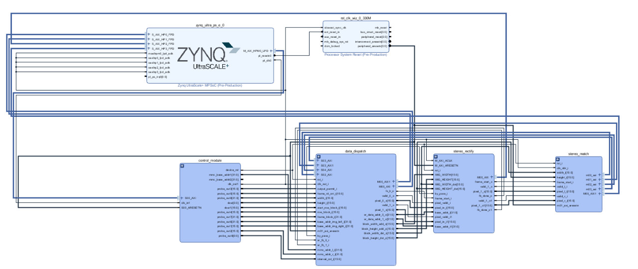 该架构中的立体匹配部分仍延用了上一代 SGM/BM 的设计算法,在保证设计性能的基础上,凯发智能采用了分块匹配的思想,将左右图像分为可拆分的两部分,分别独立进行匹配,在设计上进一步将 BRAM 资源使用量缩减至 1/2。