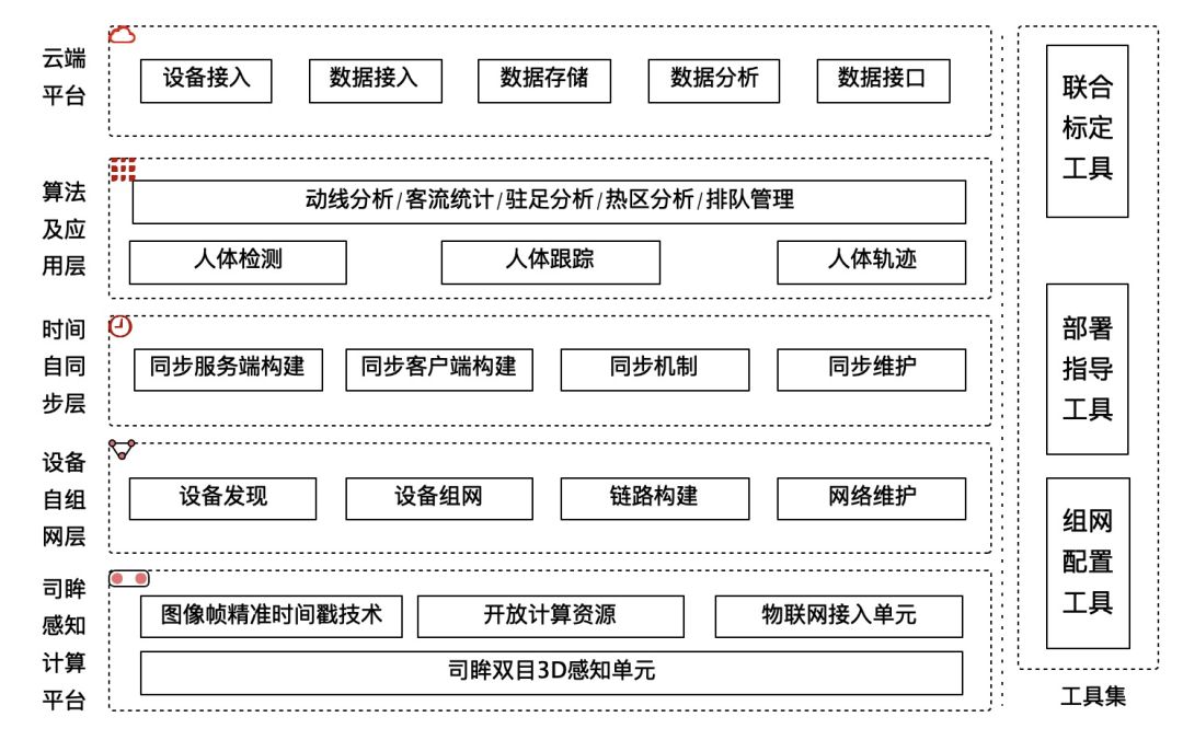 首页 动态 新品首发 | 双目视觉「多相机多目标」人体跟踪算法模型 V1.0 新品首发 | 双目视觉「多相机多目标」人体跟踪算法模型 V1.0 技术前沿 2020-03-21 浏览量:1882 01 🎙️你们要发布的是什么? 2020年3月21日,凯发智能于国内率先推出基于双目立体视觉的「多相机多目标」连续人体跟踪算法模型 V1.0,实现了「 6 相机级联,覆盖 15 米宽度」,解决了「宽大出入口场景」下人流量精准统计的行业痛点需求问题。 凯发公司本次技术创新的一大特点,是在不增加硬件、不增加计算成本的情况下,通过算法上升级迭代,实现多相机自动化协同工作,实现跨相机连续人体目标跟踪。 本次技术的升级迭代成果,已成功应用于凯发公司自主研发的司眸®️ 双目客流一体机产品系列。 02 🎙️什么是人体跟踪技术? 当下,目标检测和追踪的研究,不管在工业届,还是学术界,均是一个热点。在工业届凯发所能熟知的有 Amazon Go 的店内全域跟踪技术,已伴随着无人店的热潮进入到人们的视野。在学术届比较有名的有如 OpenPtrack 开源项目,目前因为各类 RGBD 摄像头的普及也使一些应用和案例成为了可能。但目前的研究和应用,主要集中在基于视频流的目标检测、跟踪以及跨境识别 ReID 技术,而对于室内空间的多相机阵列的研究和应用相对较少。 室内空间的人体检测及连续跟踪技术在零售、安防、机场、地铁、政府办事大厅、银行的价值已陆续得到一些验证,并且随着技术的突破和成本的降低,会逐渐成为加速 AI 落地的基础力量。 03 🎙️为什么要做这个创新? 当前,无论是 Amazon Go 还是 OpenPtrack 在对人的检测跟踪技术架构上基本上比较依赖较强算力的运算平台,因此在实际应用中成本是一个比较大的限制条件。 若是能基于较低成本打造出一套稳健的「多相机多目标」人体连续追踪系统,将会大大加快在智能零售、智能安防、智慧城市等场景下的 AI 落地。 而目前在国内,目前尚无成熟的解决方案。在世界范围内,也只有老牌客流品牌 BrickStream 以及专注于机场客流分析的 Xovis 公司有相关产品,但产品过于昂贵,不满足国内市场需求。 图 3D-多相机多目标跟踪原理展示 04 🎙️你们具体是咋做到的? 凯发智能基于多年积累的在硬件、软件、算法及领先的边缘计算加速的综合设计能力,立足于现有的司眸®️ 双目视觉感知引擎架构,推出可运行于相机平台、基于双目立体视觉的多相机多目标跟踪技术。具体方案如下: 如图中所示,系统采用分布式计算架构,1 个主模式相机和若干个从模式相机共同组成了整个多目标跟踪系统,其中每个相机采用顶视安装方式。各个相机负责自身所覆盖区域的人体检测与跟踪,最终汇集到主模式相机进行数据关联,产生全局 ID 和全局的轨迹坐标。由于各个相机已承担了大部分运算所需算力,因此数据关联处的算力需求大大降低,无需单独放置服务器用于专用计算。 图 6 相机连续级联多人跟踪 另外,为了使得多目标跟踪系统能稳定的运行,整个系统采用了如下图的设计架构,硬件基于司眸®️ 双目视觉感知引擎架构,3D 感知单元提供实时稳定的深度图计算,图像帧精准时间戳技术配合时间自同步模块可在不通过物理激励同步的情况下将不同设备间的图像帧同步在一帧误差以内,设备间时钟系统同步精度控制在 1ms 以内。针对嵌入式 CPU 研发的人体检测及跟踪算法,在单相机可提供稳定的 98% 以上的跟踪精度,多相机组配合方案提供的高精度标定工具仍能达到 95% 的精度。 此外,设备端具有物联设备接入功能,能实现云端的数据接入以及云端的监控运维,大大助力了方案的可落地性。 05 🎙️你们方案有什么亮点? 「完整的框架设计及工具集支持」 方案除了提供基本的多相机多目标跟踪的基本支持软硬件及算法,还配备了助力于方案落地的工具集,使整个方案可快速面向室内空间,进行商业化落地。 「 100% 边缘端计算」 相较于市面上的其他方案,此方案完全基于嵌入式方案构建,无需单独的服务器,一方面降低了系统的成本,另外一方面因运算过程中不传输任何图像数据,使得此方案具备先天的隐私安全性。 「低成本的设备运维」 方案在自动化组网和状态恢复上做了充分的设计保障,同时所有设备状态可以很方面的接入至云平台,因此规避了以往多设备联合工作的维护复杂性,大大降低了维护成本。 06 🎙️这个技术未来用在哪? 本次发布的方案主要针对于室内区域空间的人体跟踪场景,可应用于如实体门店的消费者分析、银行的安防监控、机场、高铁站、地铁站安防监控、客流分析、队列管理等场景。 上一个:重磅 | 凯发第三代4.5K双目视觉感知引擎架构全球首发 返回列表 下一个:3D机器视觉可以完成许多2D机器视觉无法完成的任务。 更多新闻推荐 端到端 更易用丨凯发®散料运输动态监测与预警系统全新上市 新品上市 2025-02-20 小尺寸 更灵活丨凯发3D相机PEA020-800-Y80S上新,助力多场景智造升级 新品上市 2024-09-29 目前主流3D视觉技术各有什么优劣势?如何选择最Match的工业3D相机? 技术科普 2024-08-12 【最全选型攻略】挑选合适的工业相机,必须提前考虑12要素! 工业相机 2024-07-16 场景应用丨凯发智能智能煤流监测系统全新升级,赋能自动化煤流管控 场景应用 2024-07-08 场景应用丨凯发智能3D视觉+AI深度学习,助超大型货物体积测量更准,更稳,更易用 场景应用 2024